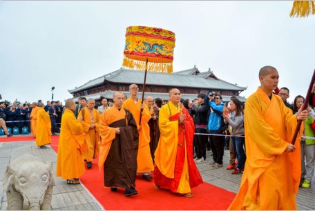 今私の手元にありますが、残念な事に規格が異なるのか或いはCDが劣化しているのか、再生することが出来ません。 そこで中国のネットを探していたら、この時の厳(おごそ)かで晴れやかな法要の写真がありましたので、ご覧ください。 なかなか日本でも類似の式典は、眼にすることが出来ないのではないでしょうか ?