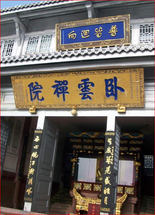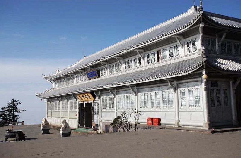 もう一つの建物である『臥雲禅院』は、華蔵寺の北側(写真では一番上)にあり、唐代(618~907年)に創建された尼寺です。建物全体が白っぽいため、『金頂(建物)』に呼応する形で、『銀頂』とも呼ばれています。日本の金閣寺に対する銀閣寺の様に、対をなしています。
